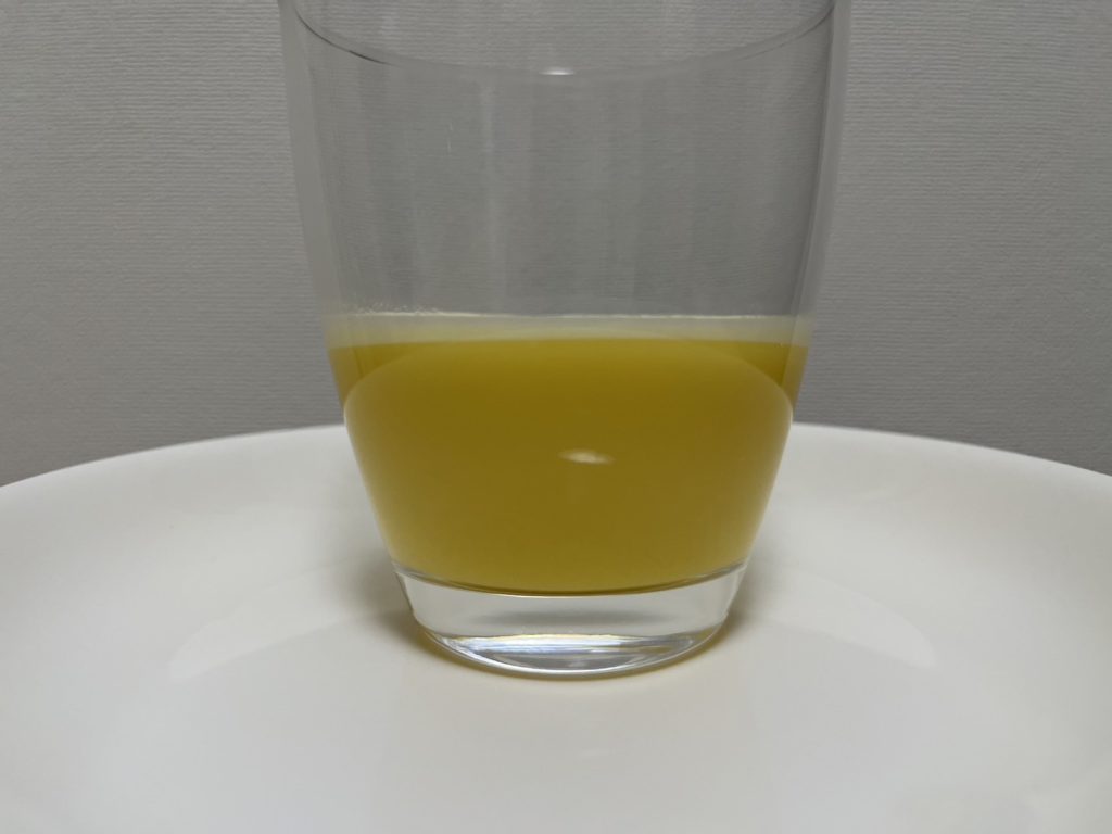 色合いは濃い黄色っぽい感じでマンゴー系の飲みものに近いのではないでしょうか。