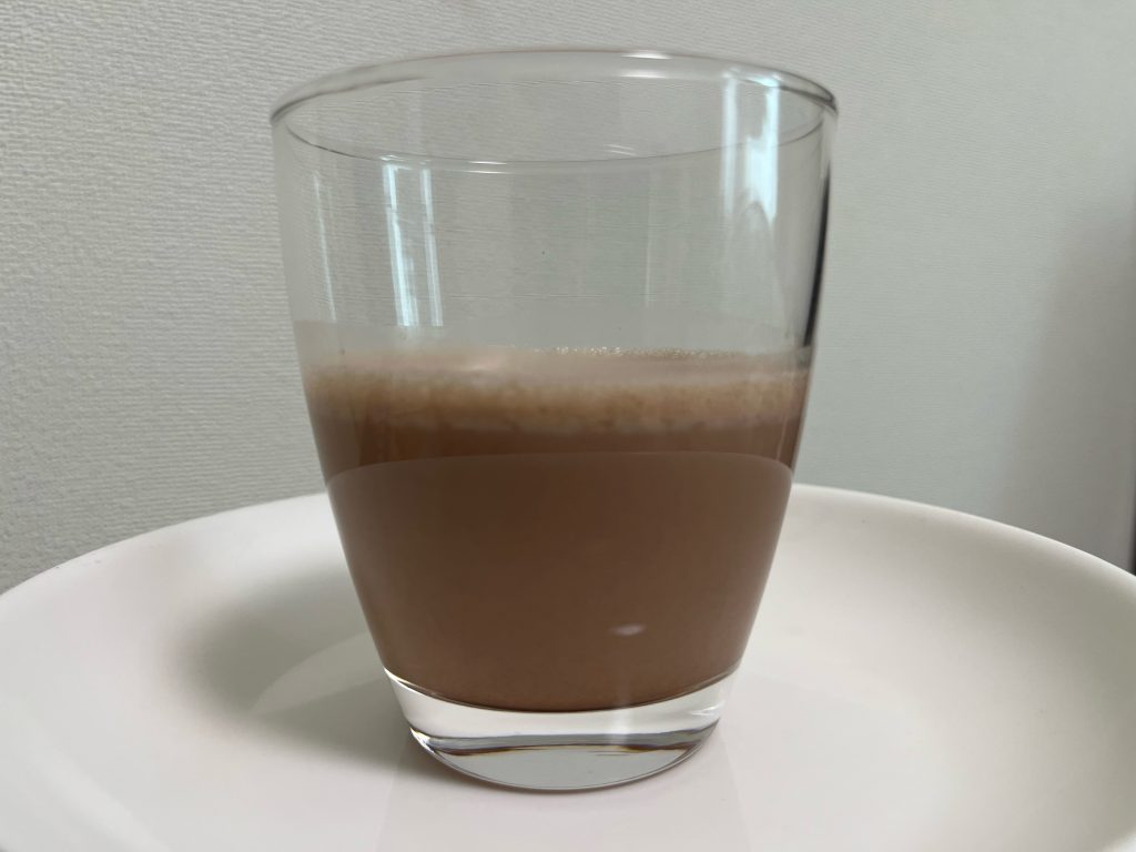 普通においしいココア味で、飽きずに続けられそうです。前回購入したキャラメルホワイトチョコ味はちょっとだまになりやすかったのですが、こちらはとても溶けやすいです。